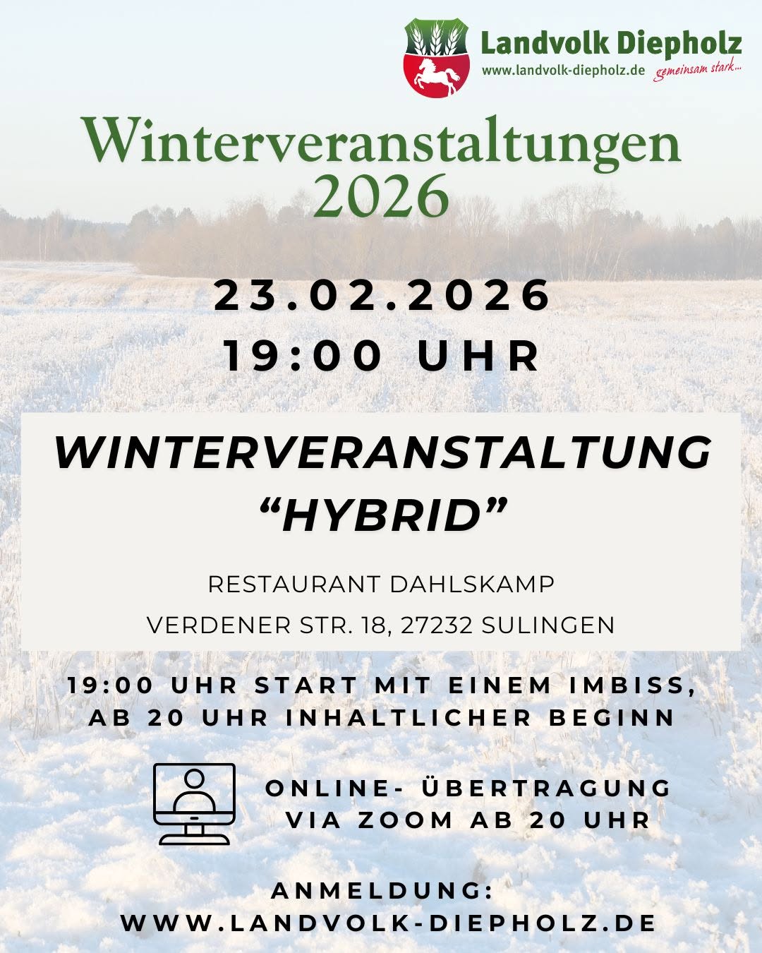 Am Montag findet unsere letzte Winterveranstaltung statt, sowohl in Präsenz in Sulingen (mit Essen 😋) wie auch online (…
